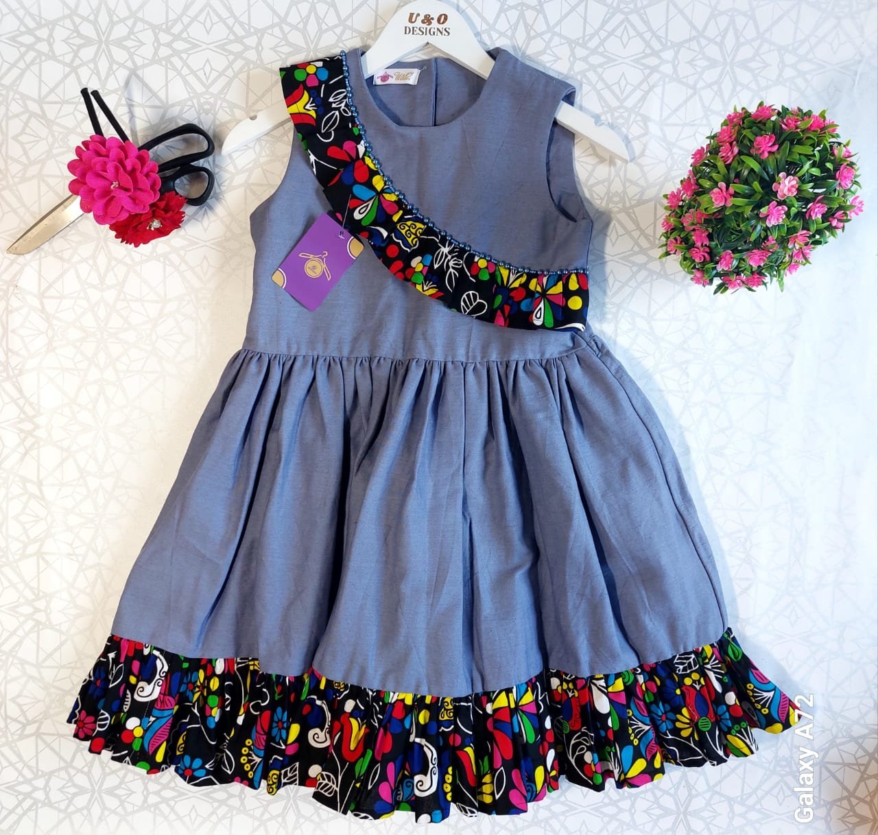 The soft blue hue adds a touch of calm sophistication, while the floral base brings a playful, garden-inspired feel — perfect for birthdays, weddings, and picture-perfect moments. Made with comfort in mind, it allows easy movement and all-day wear for your active little star.